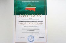Диплом призера Республиканского конкурса научно-исследовательских и творческих работ "Мой Татарстан" вручен Зайнуллиной В.А. Поздравляем!