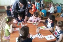 Подгорная И.Г. познакомила детей с понятием «горный пейзаж»; научила с помощью объемной аппликации делать горы, с помощью бумажных салфеток – баранов.