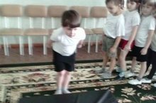 Вафина Н.А. упражняет воспитанников средней группы в прыжках в длину с места.