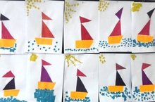 Подгорная И.Г. научила детей вырезать основные части силуэта яхты, преобразовывая прямоугольник в два треугольника и срезая угол. Научила передавать образ моря путем отрывания от листа цветной бумаги кусочков среднего размера, нанесения на них клея и наклеивания в определенном месте. Способствовала воспитанию самостоятельности, аккуратности при работе с клеем.