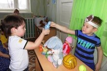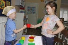 На занятиях по художественному творчеству педагог Ахметшина Н.А. продолжает учить детей работать с пластилином и скатывать его в комочки.