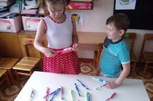 Носики-курносики.Педагог Гадеева Л.Т. и малыши группы "Солнышко" помогли коту Василию доехать до котят - "починили" железную дорогу. Ребята научились изображать короткие прямые линии.