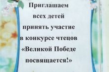 В старшей группе объявлен конкурс чтецов, посвященный Дню Победы. Приглашаем принять участие!