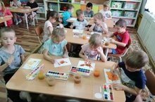 В ходе образовательной деятельности по рисованию, воспитанники старшей группы №2 обучались передавать в рисунке образ котёнка,закрепляли умение изображать животных, используя навыки рисования кистью и красками.