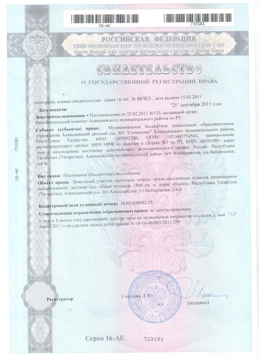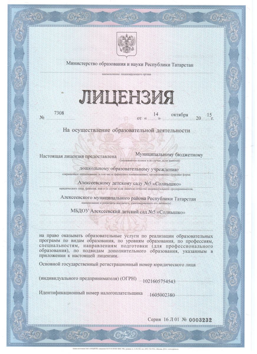 Муниципальное бюджетное дошкольное образовательное учреждение Алексеевский детский сад №5 «Солнышко» Алексеевского муниципального района Республики Татарстан / Татарстан Республикасы Алексеевск муниципаль районының 5нче Алексеевск «Кояшкай» балалар бакчасы муниципаль бюджет мәктәпкәчә белем бирү учреҗдениесе
