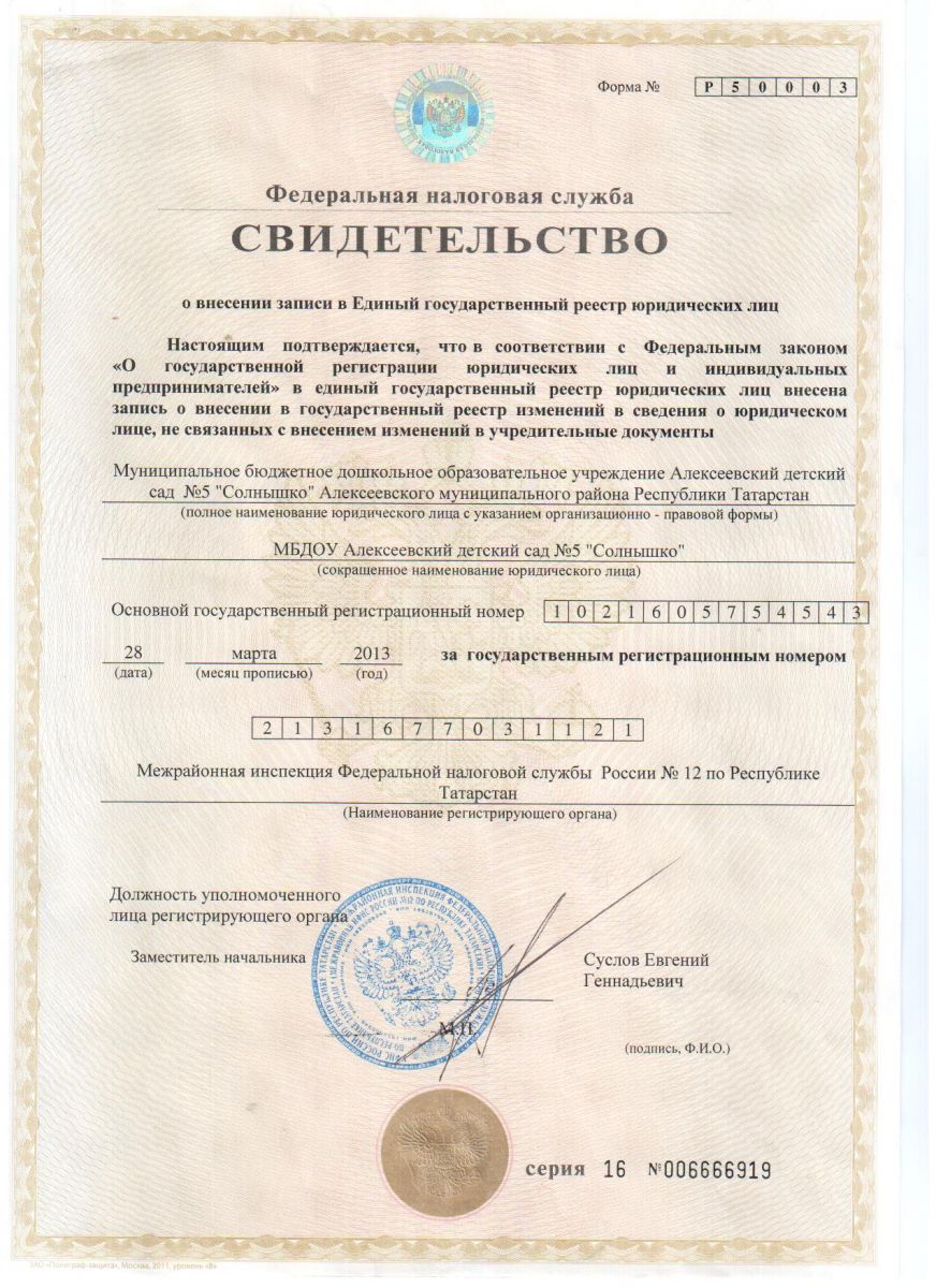 4. Свидетельство о внесении записи в Единый государственный реестр юридических лиц