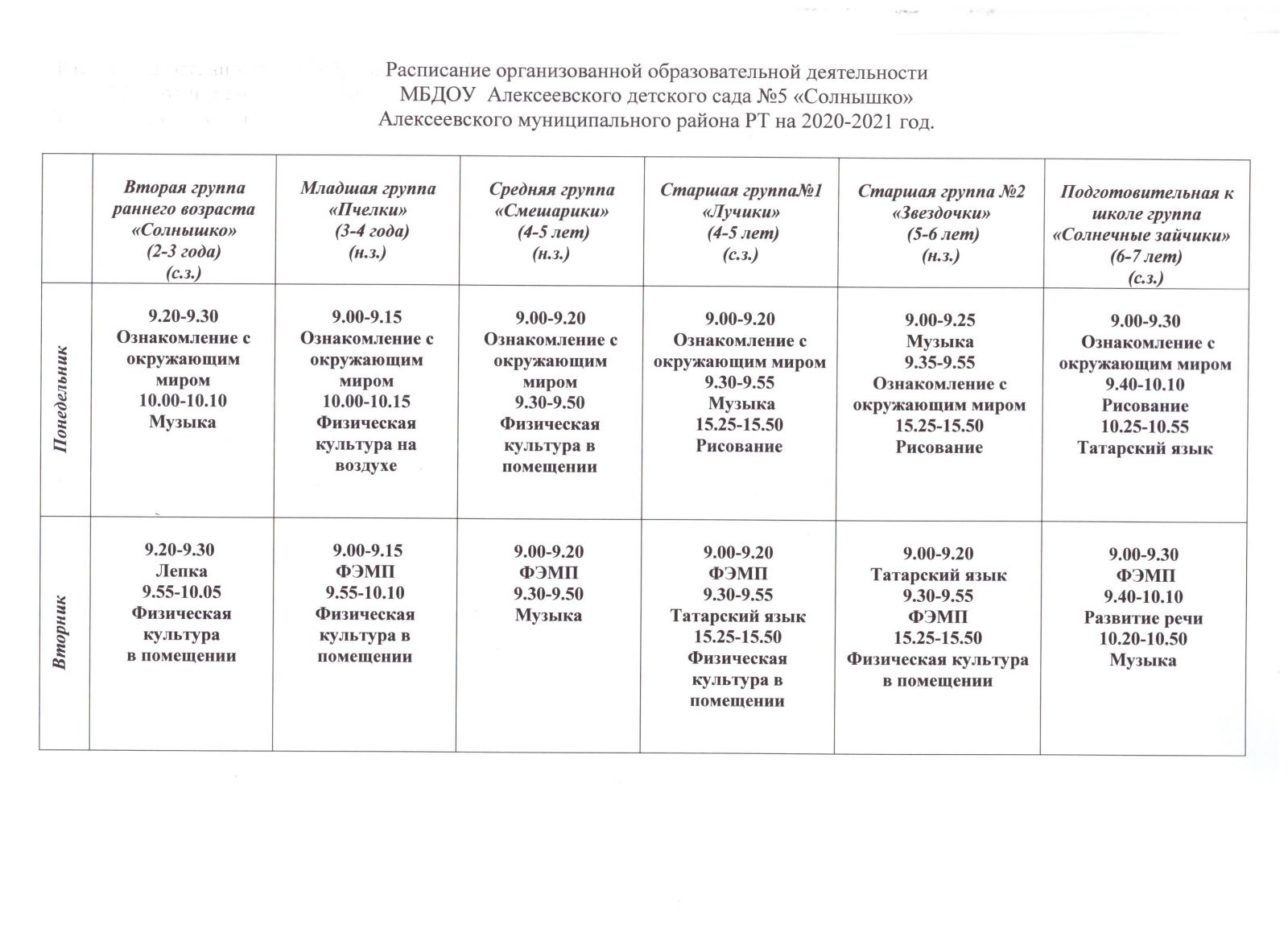 Расписание ООД на 2020 - 2021 учебный год 2 страница, 3 страница, 4 страница