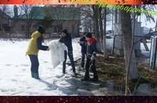 Учащиеся нашей школы приступили к уборке территории школы. Несмотря на то, что территория школы еще заснежана, первый мусор уже собран.