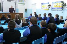 Сегодня в нашей школе сотрудником ГИБДД Хусаиновым Р.З. была проведена беседа с учащимися 1-9 классов (32 человека) и родителями на тему «Недопущение происшествий с участием несовершеннолетних в период зимних каникул».