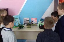 Выставка "На страже Отечества". Она проходит в рамках месячника гражданско-патриотического воспитания.