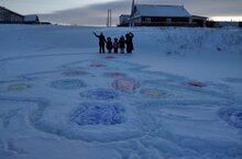 Нескучные каникулы. Рисование на снегу из бутылочек цветной водой способ довольно необычный, неординарный. Педагоги школы вместе с детьми нарисовали новогоднюю ёлку, снеговика.