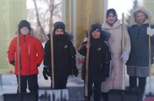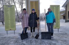 Работники детского сада убрали снег возле памятника Великой Отечественной войны для заботы о его чистоте. Сохранение и уход за памятником - задача всех нас. Каждый житель села и сотрудники любой организации могут проявить патриотизм, помогая поддерживать чистоту на территории памятника.