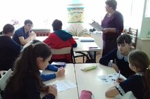 Интеллектуальная игра "Что? Где? Когда?". Участие в игре приняли учащиеся 5,6,8 классов. Внеклассное мероприятие было приурочено к Году родных языков и народного единства.