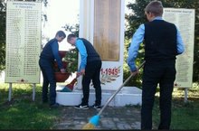 Обучающиеся 8 класса провели уборку на территории Памятника павшим воинам.