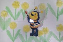 С воспитанниками дошкольной группы сделали красивый весенний ковер из одуванчиков для Пчелки Майи.