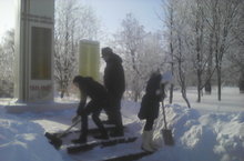 В рамках патриотического месячника, дежурный класс очищает парк и памятник от снега,следит за благоустройством территории.
