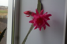 Прекрасным розовым цветком расцвёл кактус в кабинете биологии. Благодаря чуткому уходу и заботе Валентины Петровны в кабинете всегда можно наблюдать цветущие растения.