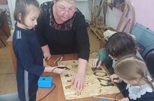 Внеурочное занятие по выжиганию на дереве. Ребята прошли инструктаж по технике безопасности, после чего узнали немного о технике выжигания. В конце занятия ребята попробовали себя в роли художника-оформителя.