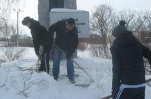 В канун месячника военно-патриотического воспитания учащиеся нашей школы принимали активное участие в очистке снега у памятника воинам ВОВ и домов труженников тыла