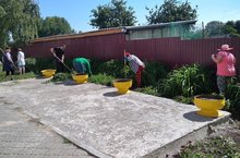 День начался активно! Работники школы, детского сада провели работы по облагораживанию территории: скосили траву, пропололи клумбы, полили цветы и удалили сорняки с цоколя школы.