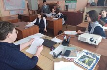 После уроков в кабинете обществознания не утихают споры и смех. Юнармейцы готовятся к играм КВН.