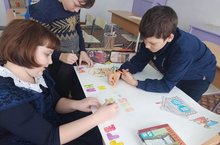 Занятие по профориентации с учащимися 1 класса "Дядя Степа-милиционер". Нина Геннадьевна рассказывала о разнообразии специальностей этой профессии, о истории появления функции полицейского. Занятие закончилось игрой "Соотнеси слово и картинку".