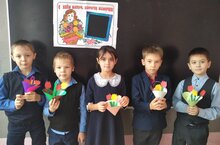 На День Матери учащиеся 1 класса решили приготовить подарок своей маме. Мама очень любит красные тюльпаны, поэтому ребята смастерили корзинки с тюльпанами.