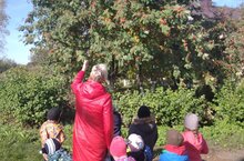 Самая красивая осенняя пора! С приходом осени листья растений меняют окраску. Деревья желтеют не все сразу, они меняют цвет по очереди, подготавливаются к зимним холодам. Желтеют листья клена ... Они пока еще совсем малыши, но уже наблюдают за сезонными изменениями: листья желтеют и падают, тучки на небе, дождик накрапывает. Дошкольники наглядно увидели осенние изменения в природе. Прогулка является хорошим средством укрепления здоровья и способствует умственному развитию ребенка. Вот так проходила прогулка, которая началась с наблюдения за рябиной,