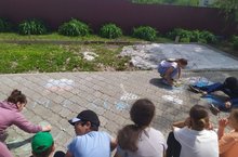 В летнем оздоровительном лагере с дневным пребыванием "Робин Гуд" прошла акция «Россия рисует», приуроченная к предстоящему Дню России. Ребята приступили к изготовлению российского флага, рисуя мелками на асфальте. Так, дети проявили своё уважение к одному из главных символов нашей Родины, российскому флагу.