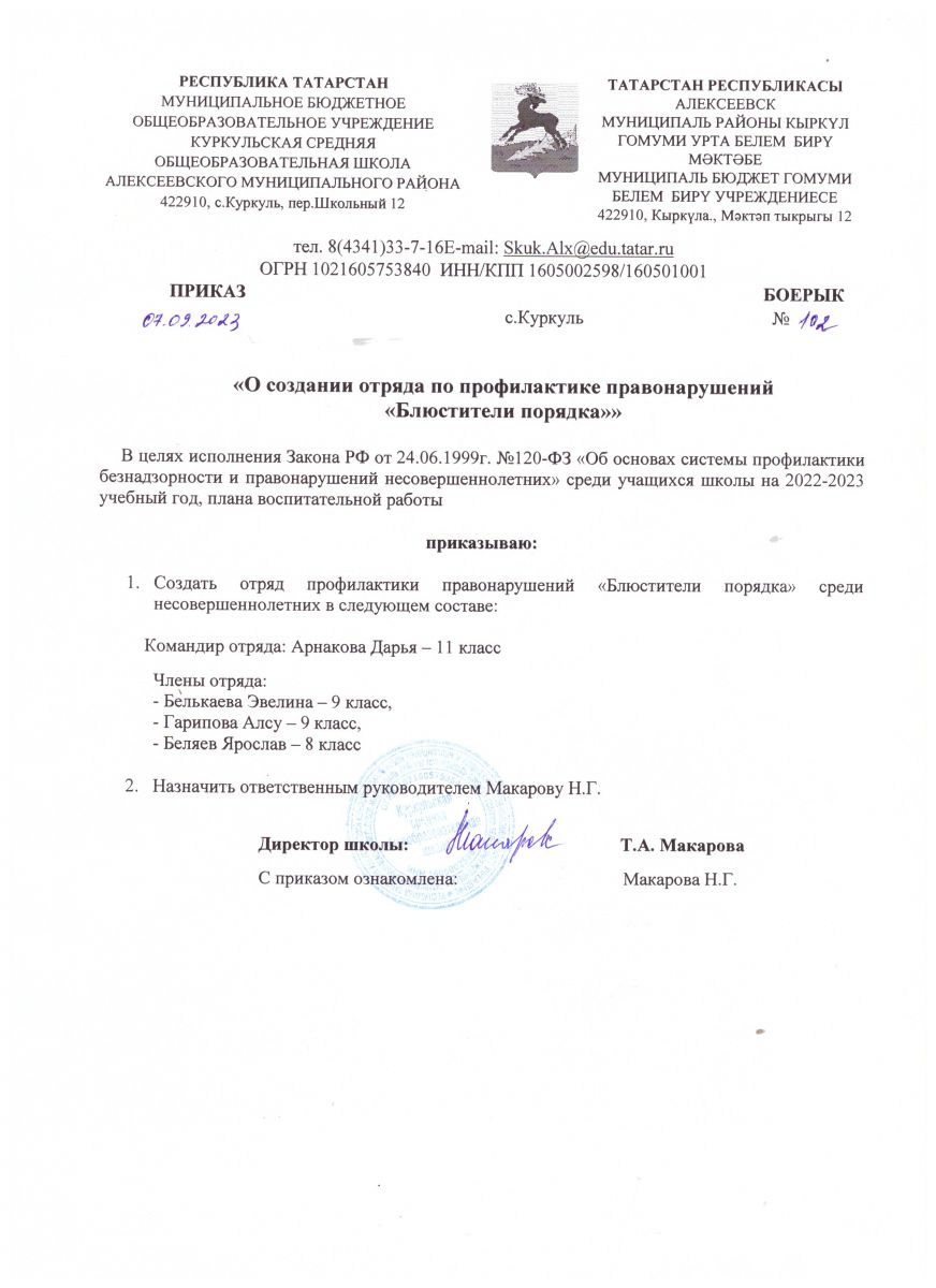Приказ о создании отряда по профилактике правонарушений Блюстители порядка 2022-2023.pdf