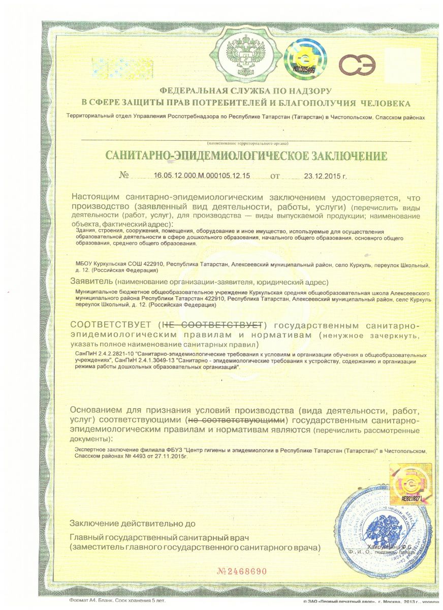 Санитарно-эпидемиологическое заключение от 23.12.2015 г