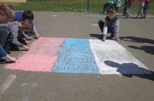 С ребятами в этот день провели беседу по символике России, посмотрели презентацию. Затем была игра по станциям . Провелии конкурс рисунков на асфальте "Моя любимая Россия", в заключении пели песни о России.