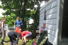 В предверии дня Памяти и скорби, ребята пришкольного лагеря провели уборку территории памятника
