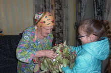 Сегодня ученики нашей школы приняли участие в акции "Подари цветок ветерану", они вручили цветок Фирсовой Марие Ивановне, чтобы он ее радовал.