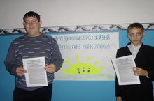В рамках антинаркотической акции ученики школы рисовали рисунки на тему: "Скажем нет наркотикам!", ученики средних классов потрудились над созданием газеты "Мы за здоровый образ жизни, мы против наркотиков", а сегодня ученики 5-6 классов раздавали ученикам средних и старших классов памятки.