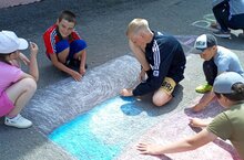 В праздник "День России" для воспитанников пришкольного лагеря был организован конкурс рисункоа на асфальте.