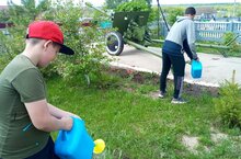 Сегодня ребята из лагеря труда и отдыха трудились на пришкоьном участке.