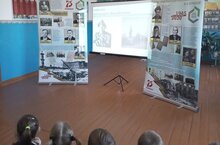 Учащиеся начальных класов посетили школьный музей и познакомились с атрибутикой пионерии. Учитель истории показала барабаны, горны, флаги которые находятся в музее.