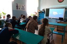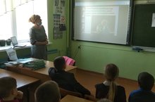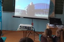 Учащиеся смотрели фильм на портале "открытый урок.рф", посвященный космонавтике.