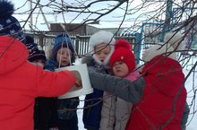 Ребята детского сада на прогулке кормили пернатых, приготовленным заранее угощением, рассказывали стихи и разгадывали загадки.