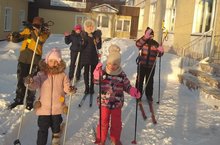 В Рождественский праздник ребята отправились в зимний лес на лыжах.
