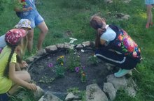 В "День экологии" мы убирались в школьном дворе, поливали клумбы, ходили в лес .