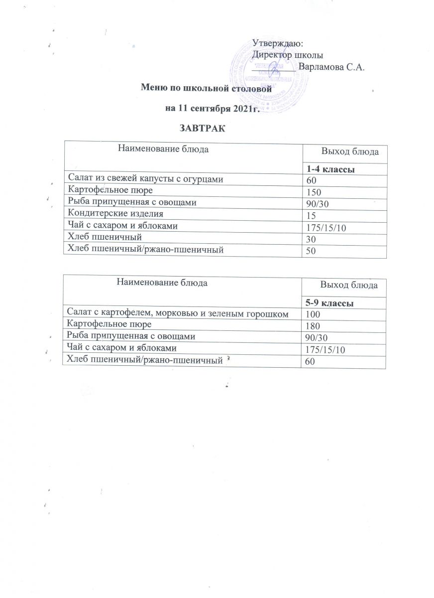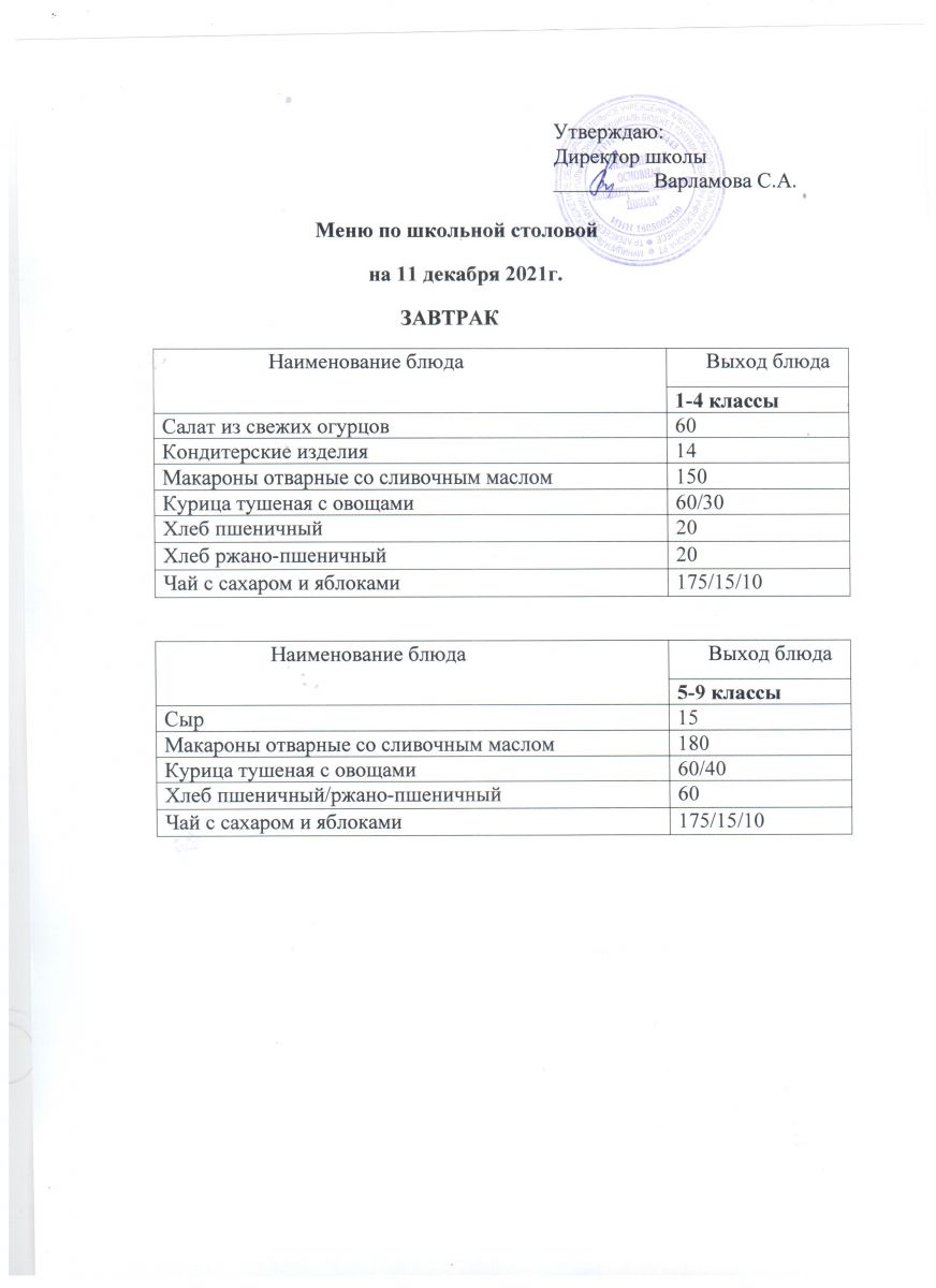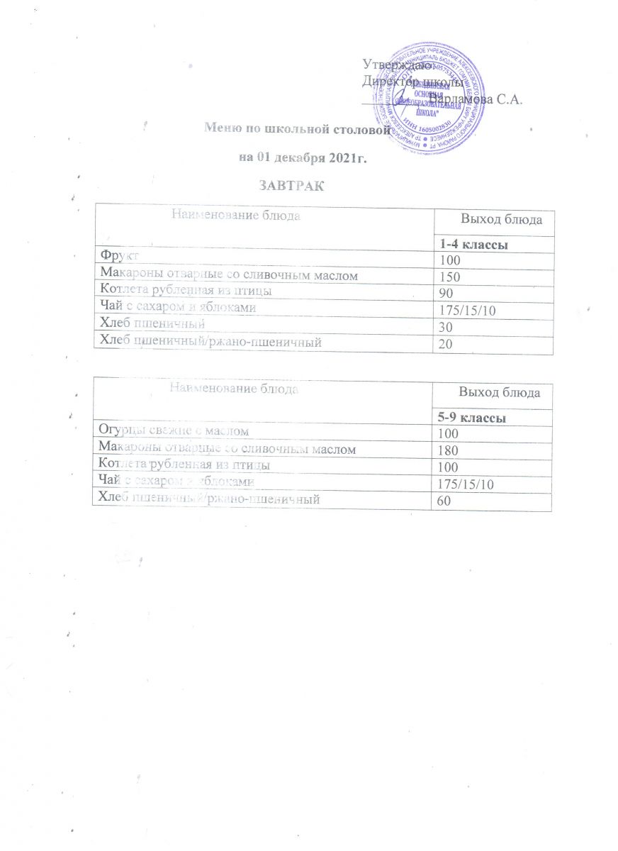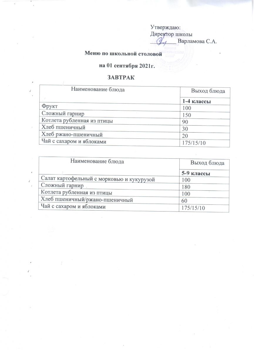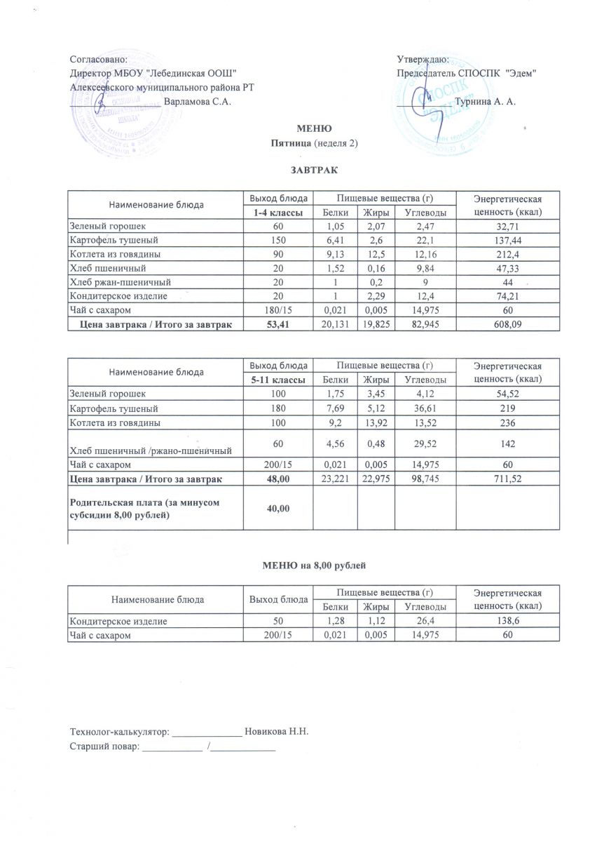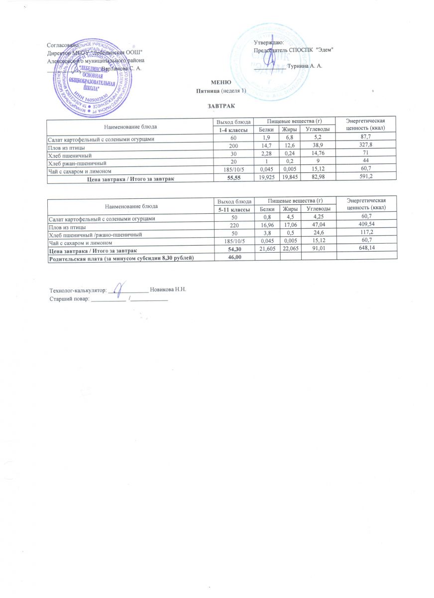 Меню по школьной столовой на пятницу 1 неделя 2021.