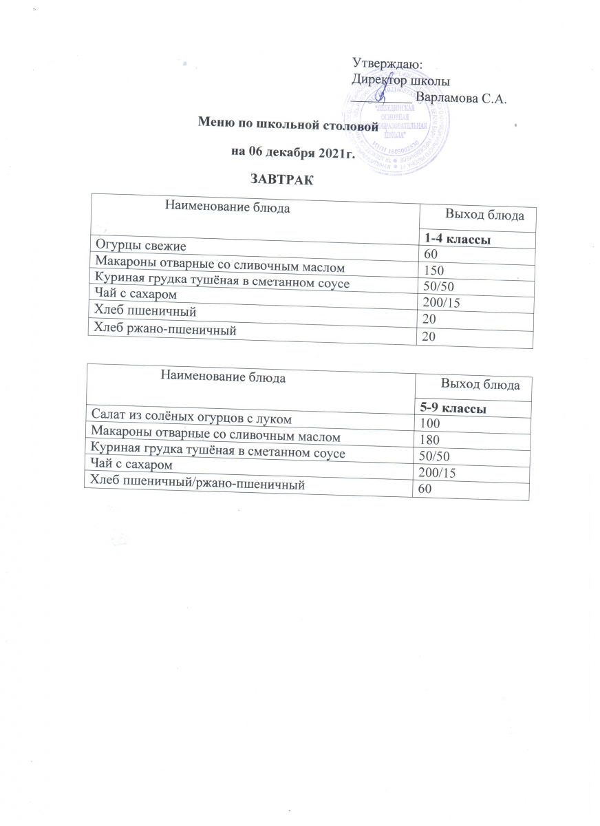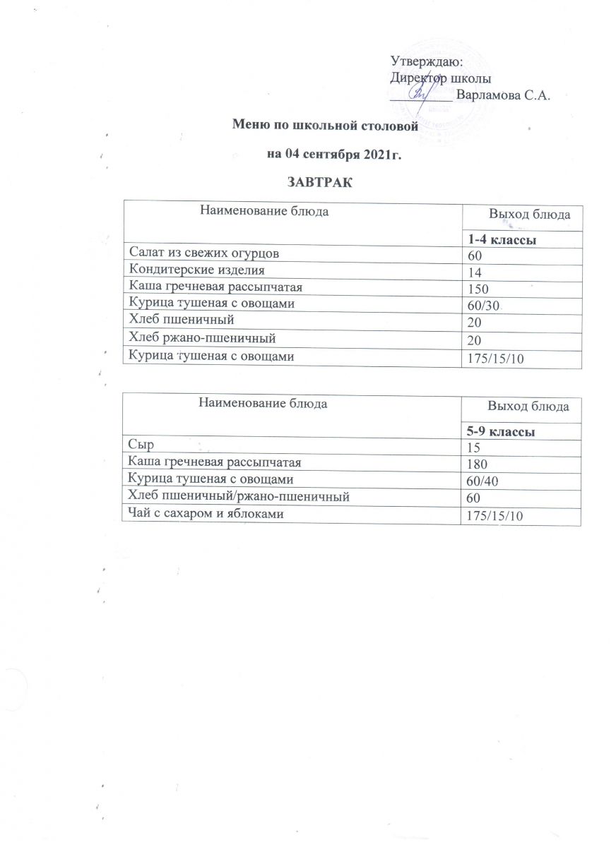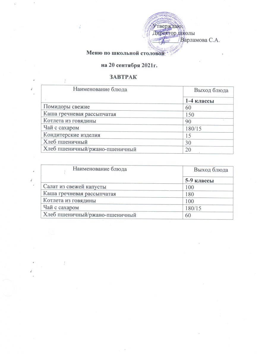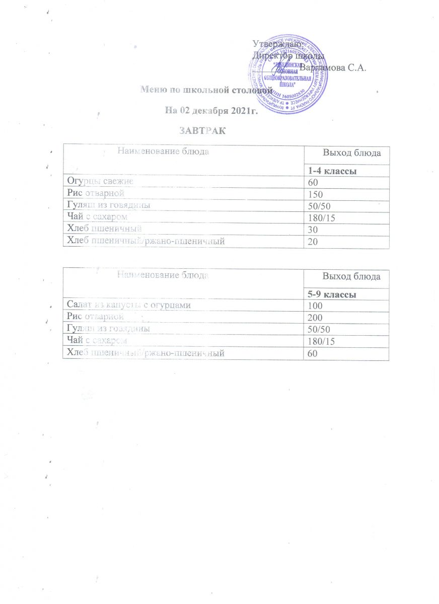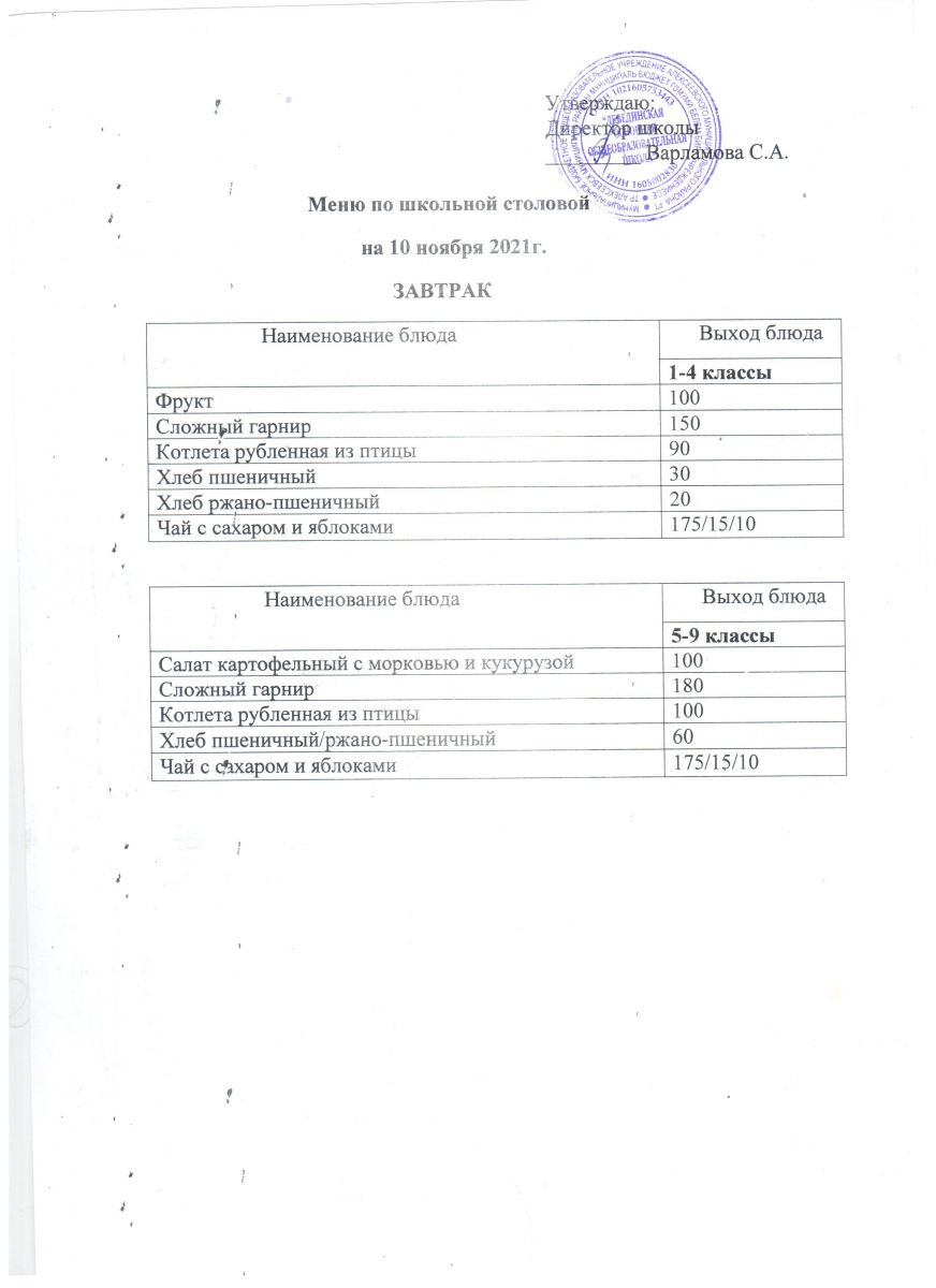 Меню по школьной столовой на пятницу 1 неделя 2021.