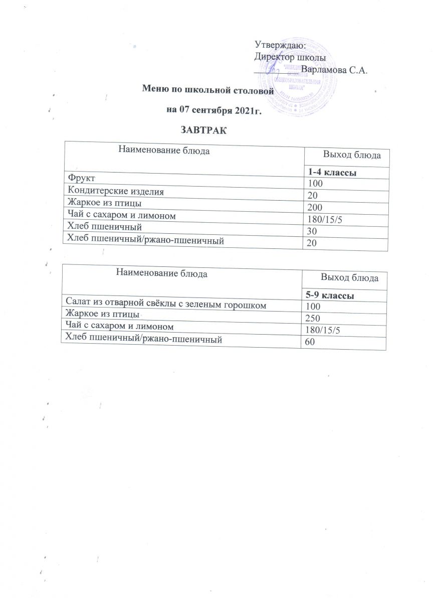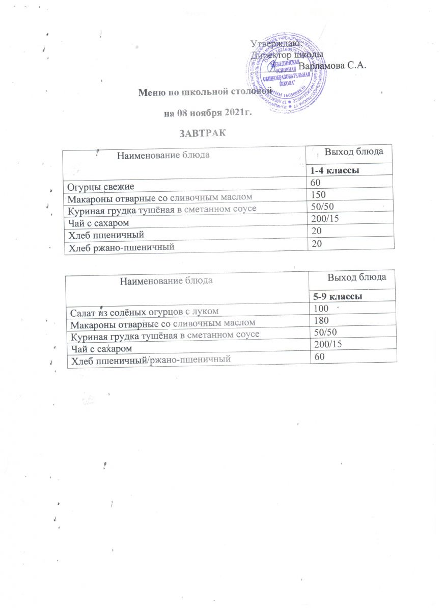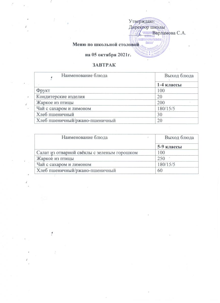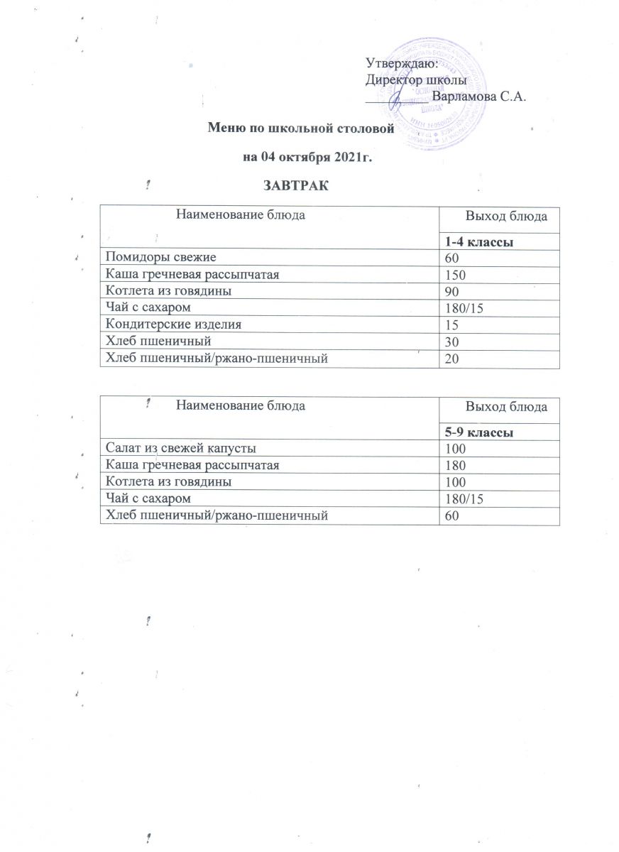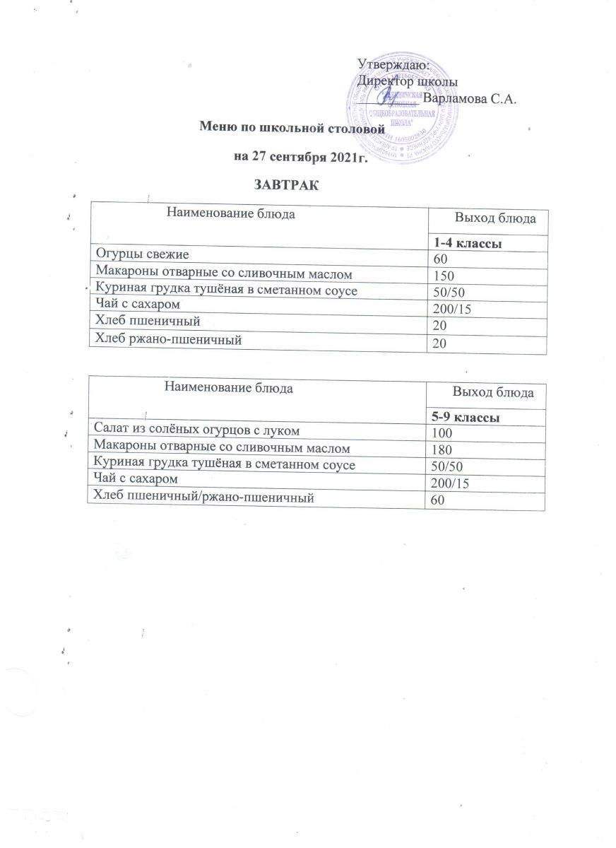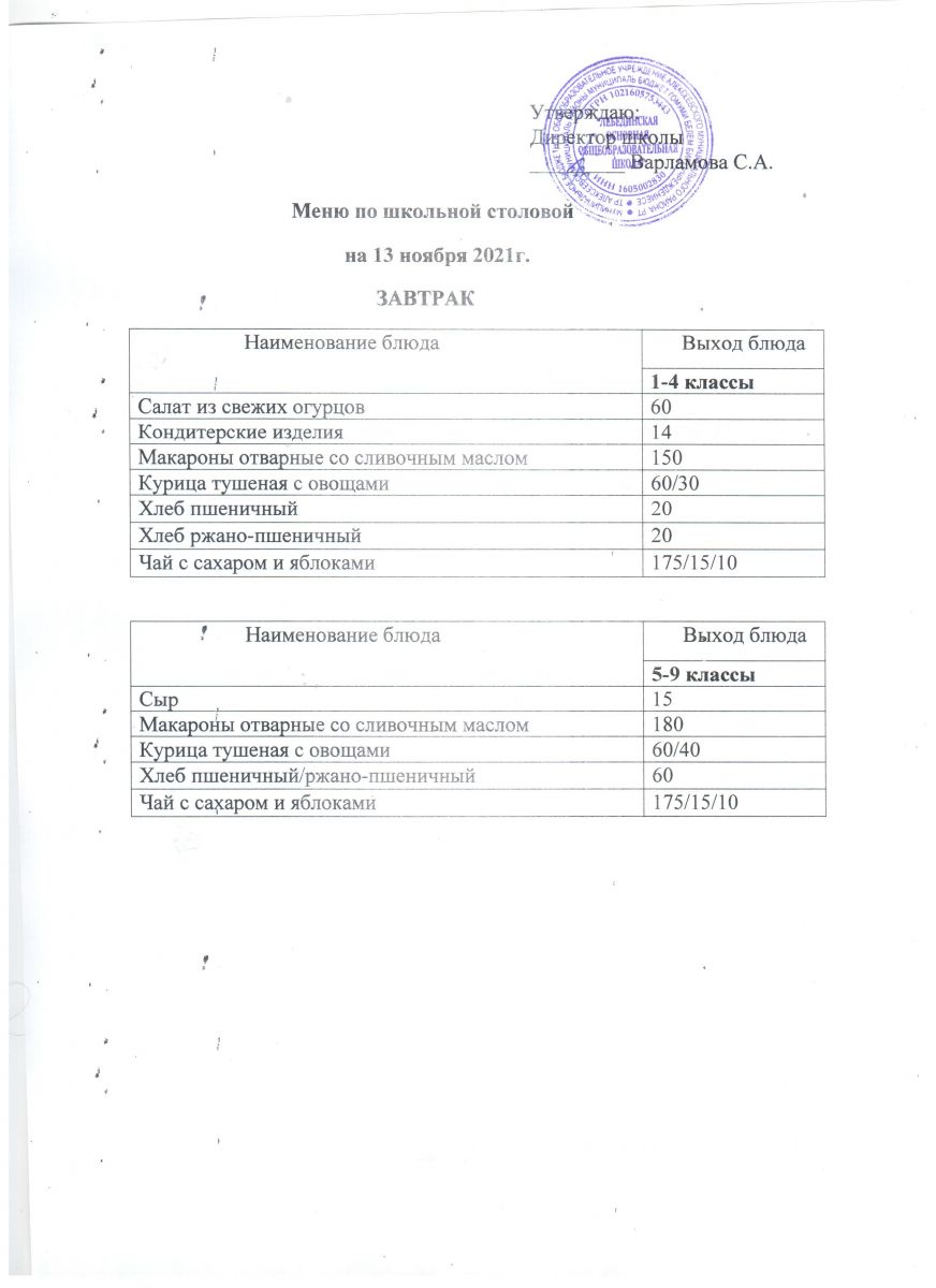 Меню по школьной столовой на пятницу 1 неделя 2021.