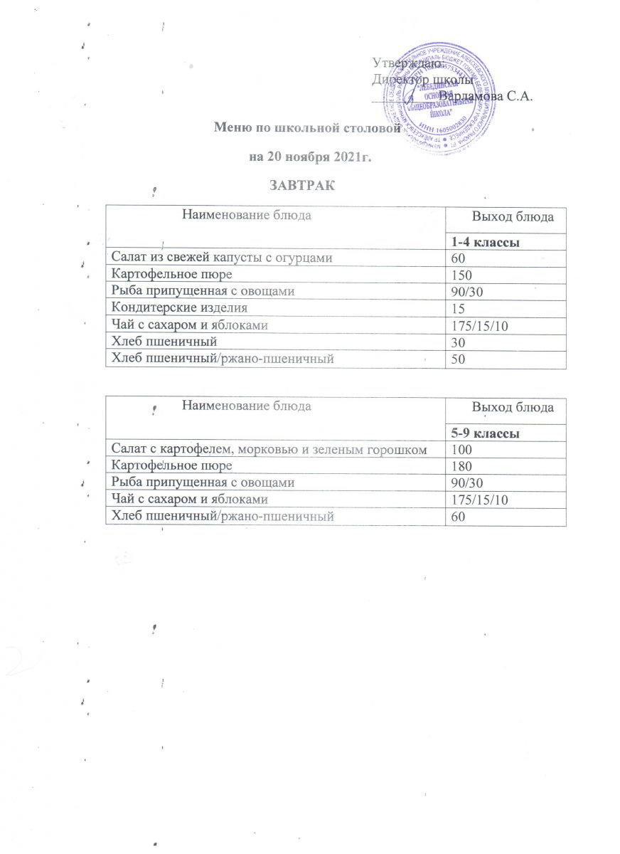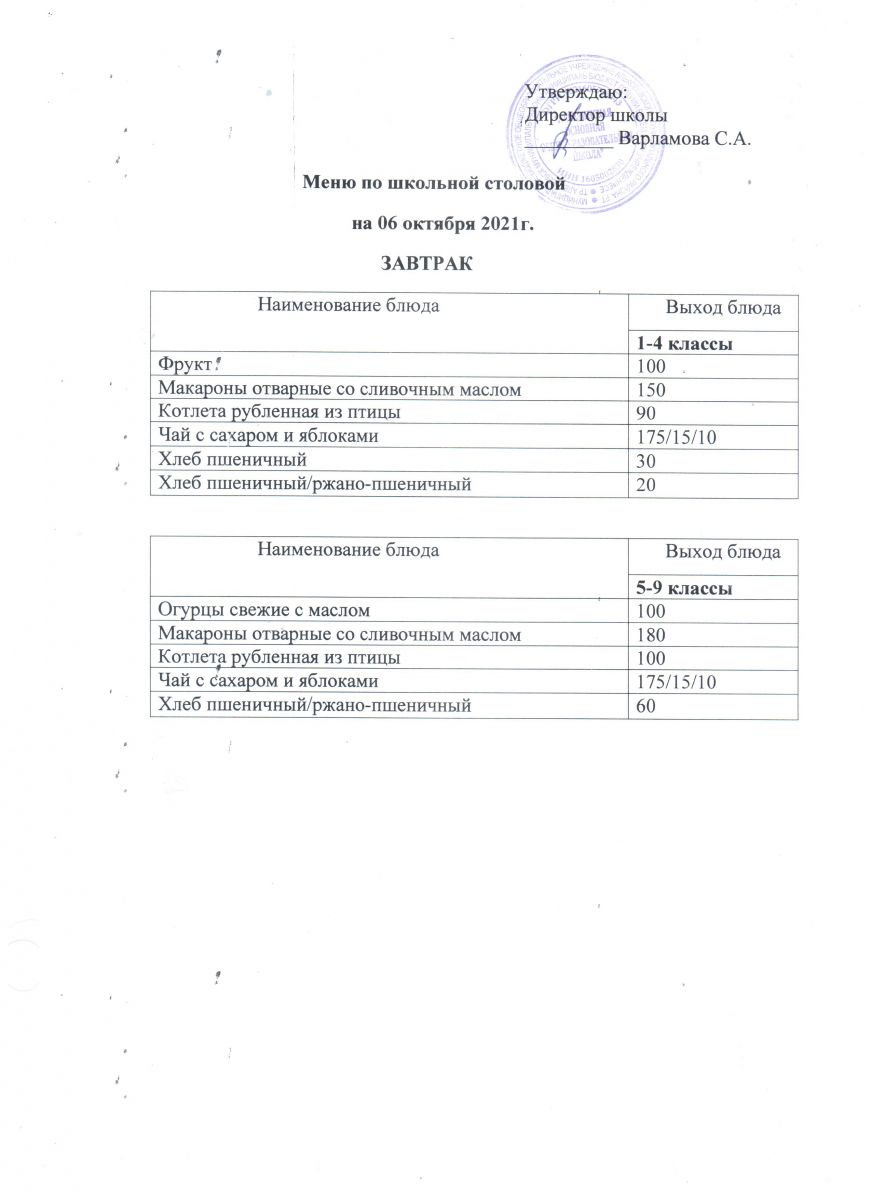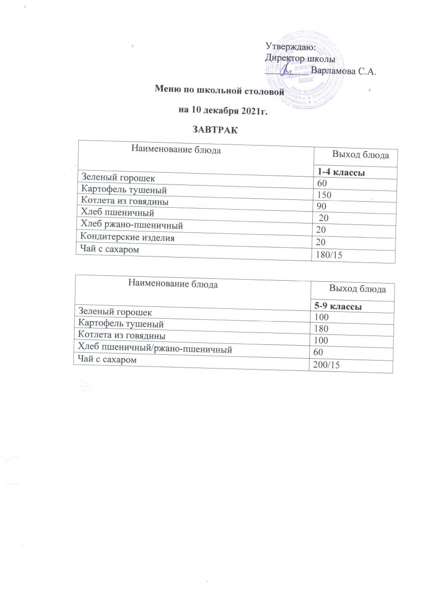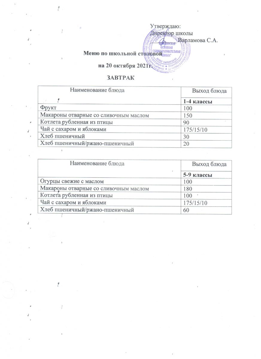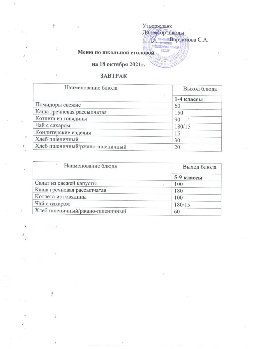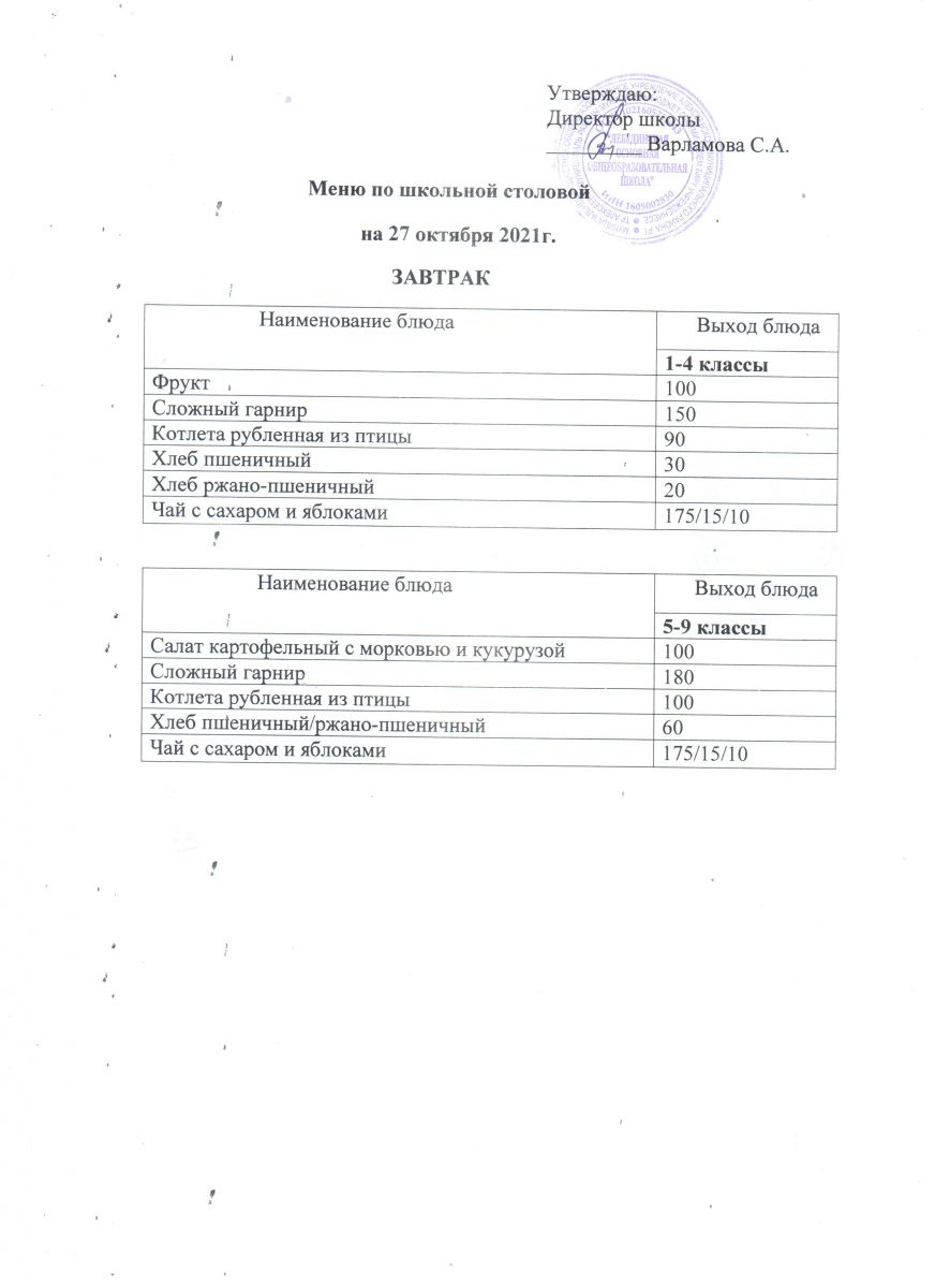 Меню по школьной столовой на пятницу 1 неделя 2021.