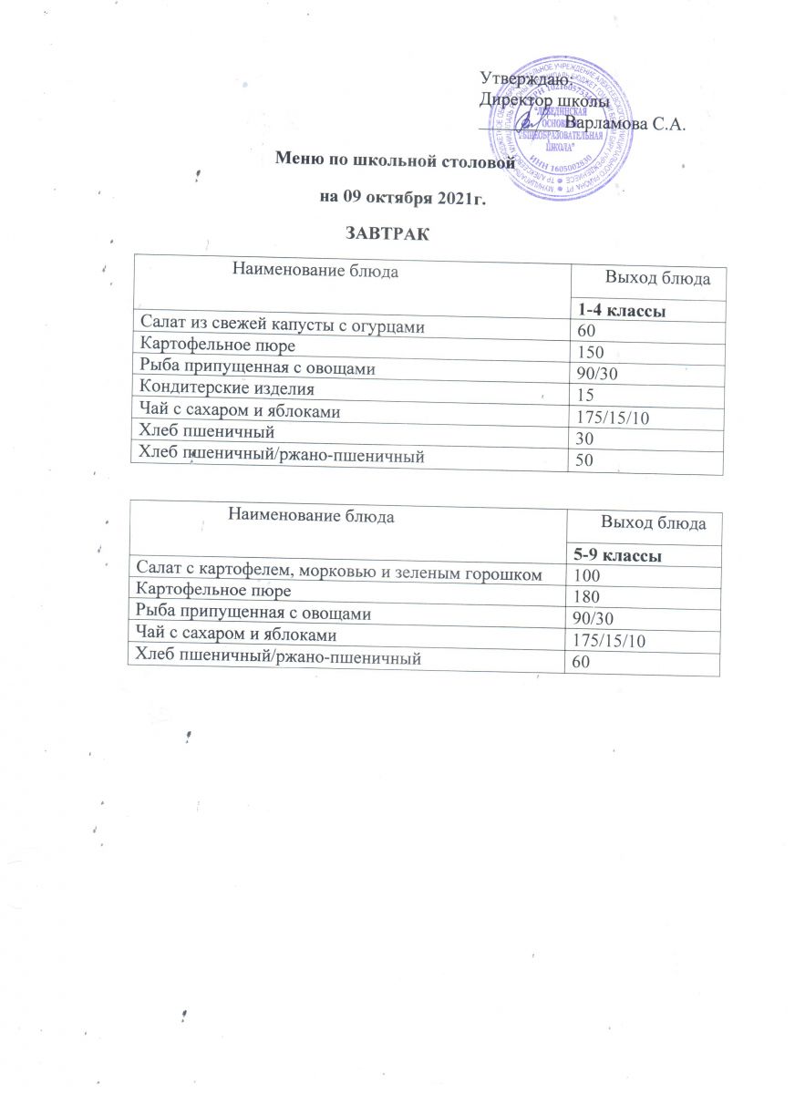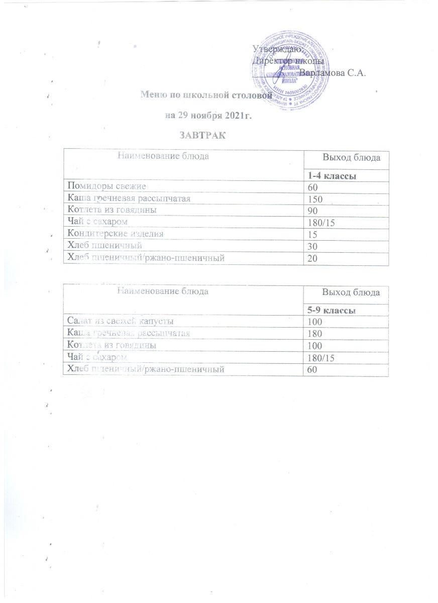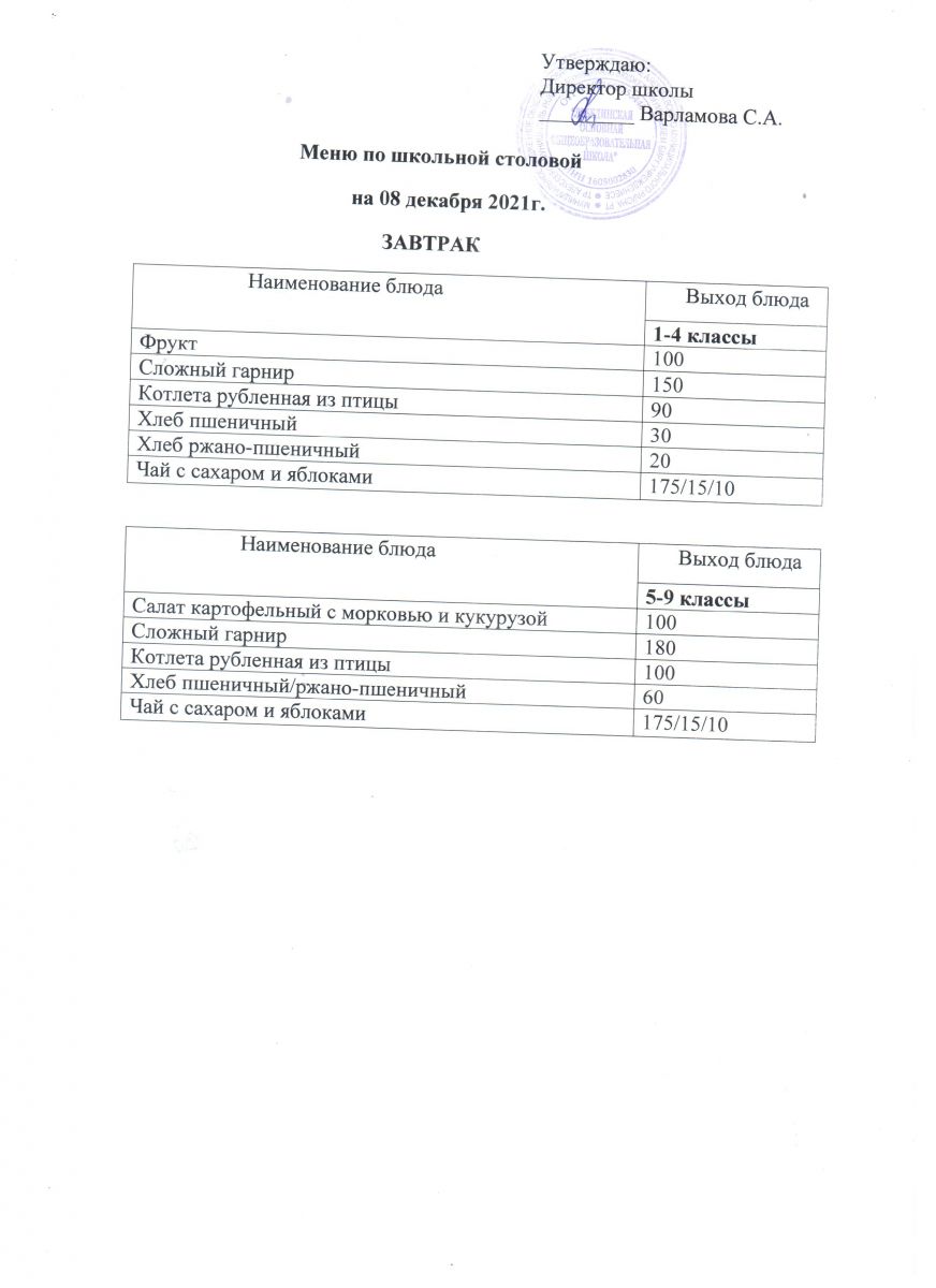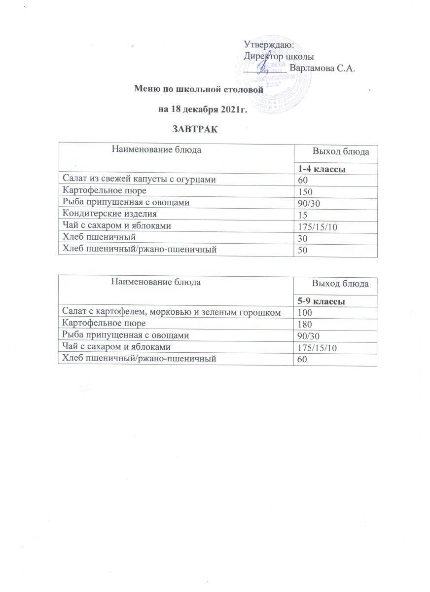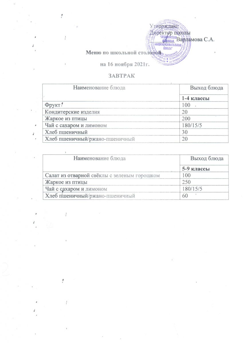 Меню по школьной столовой на пятницу 1 неделя 2021.