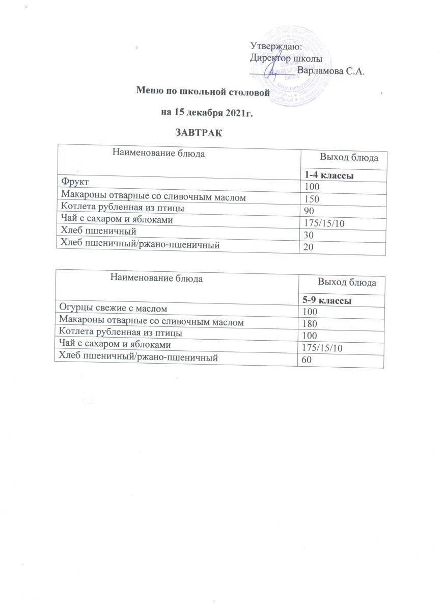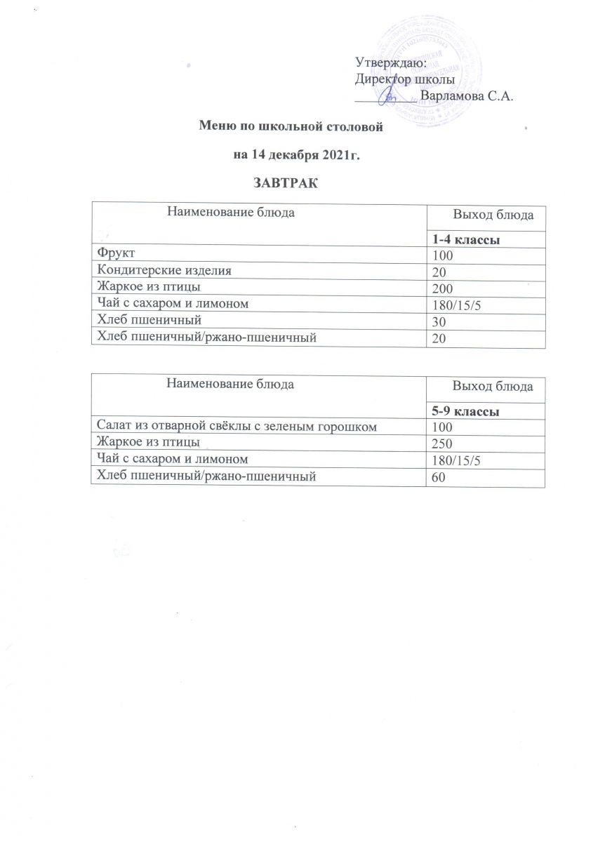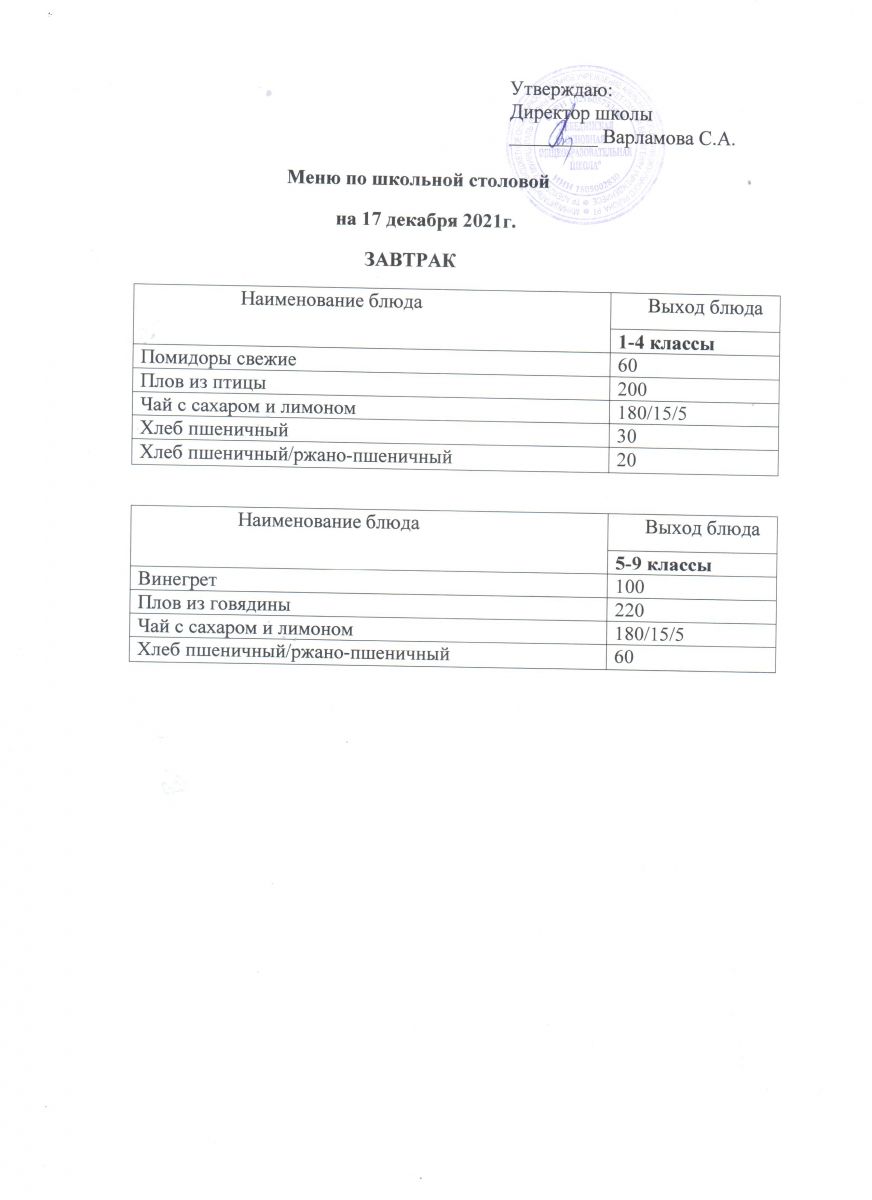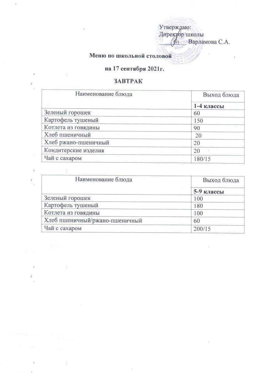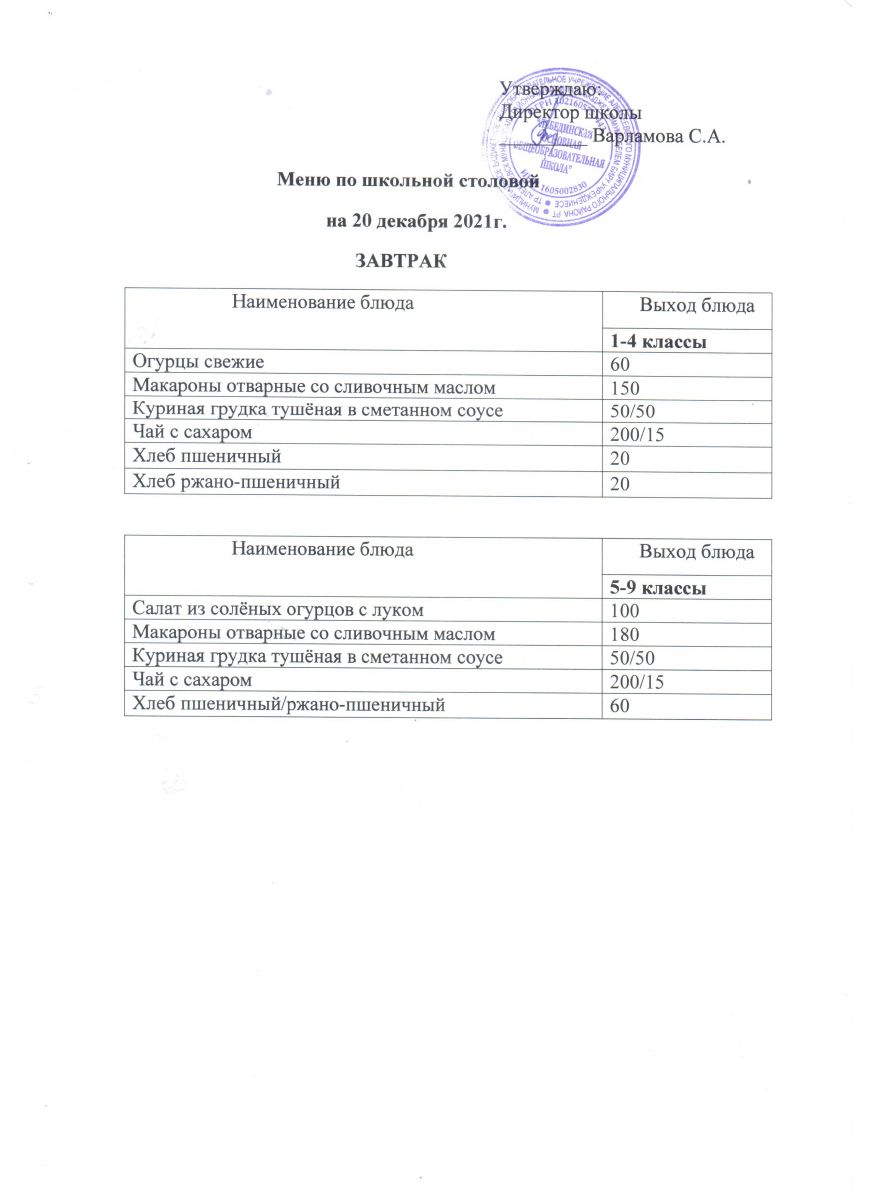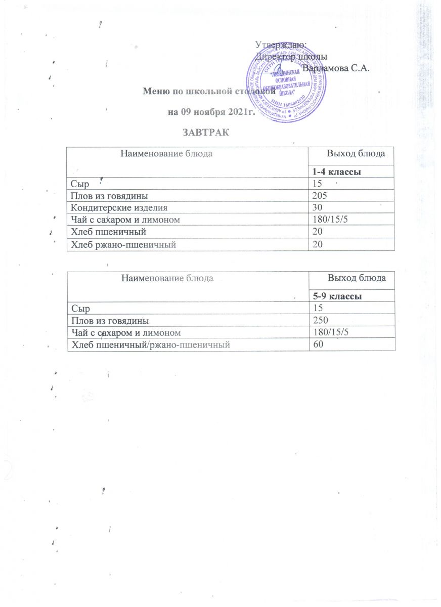Меню по школьной столовой на пятницу 1 неделя 2021.