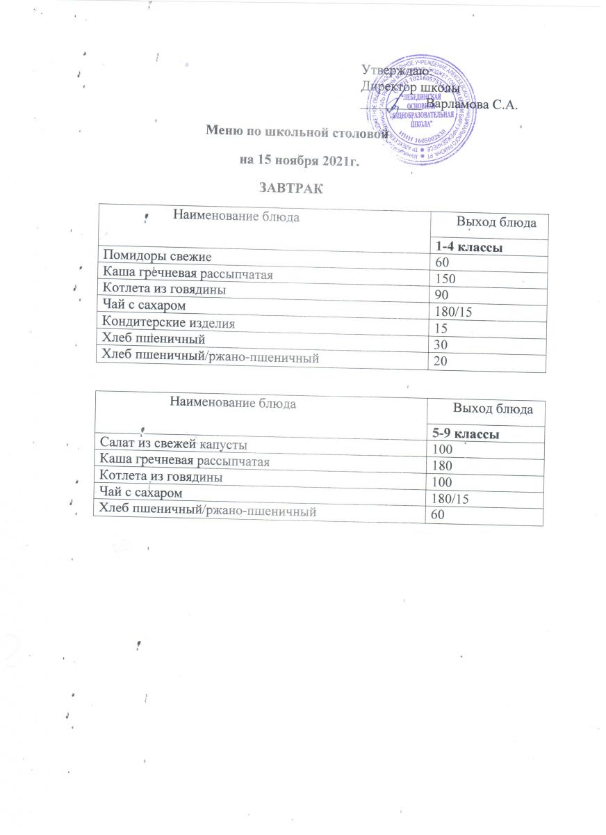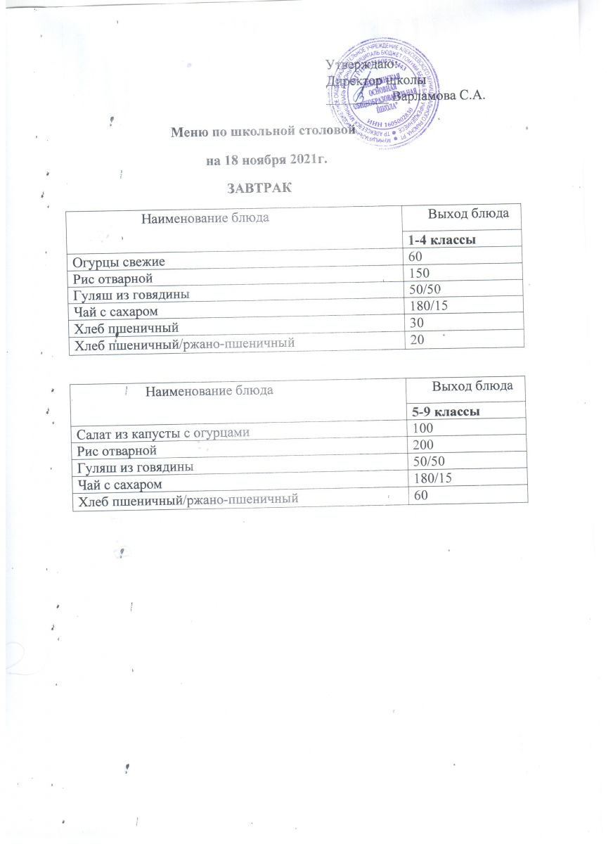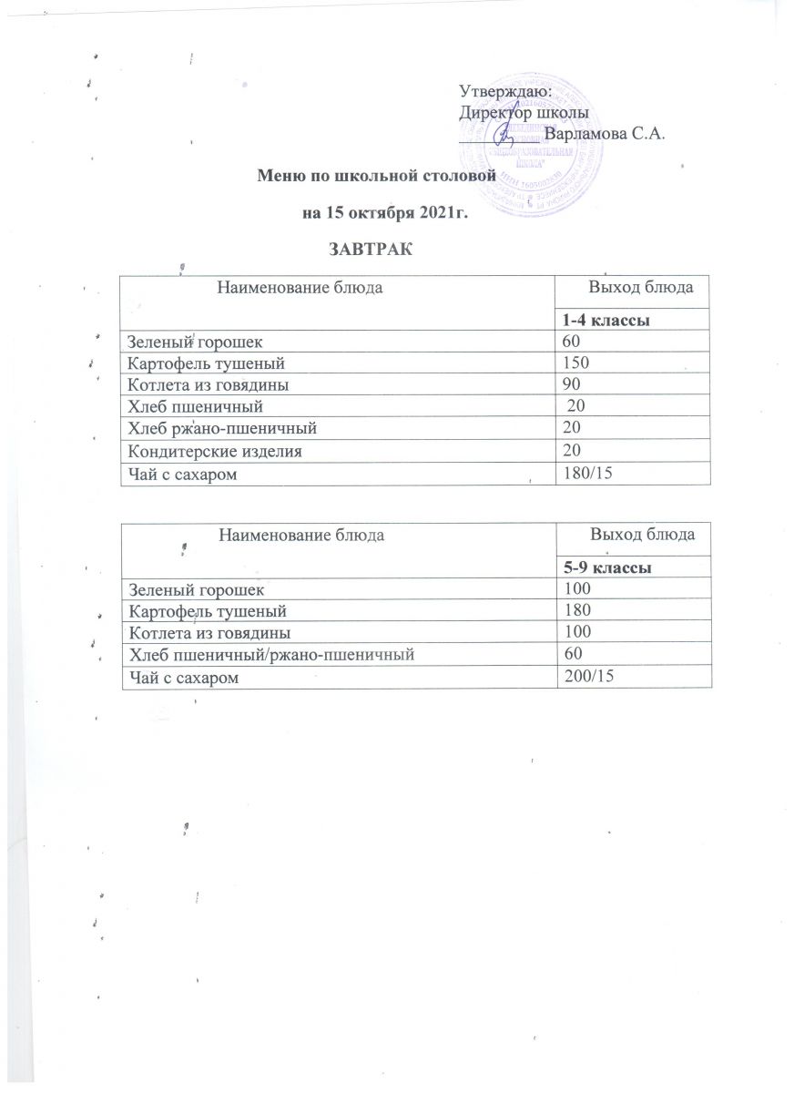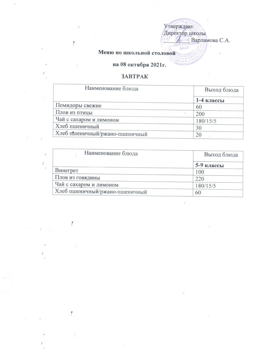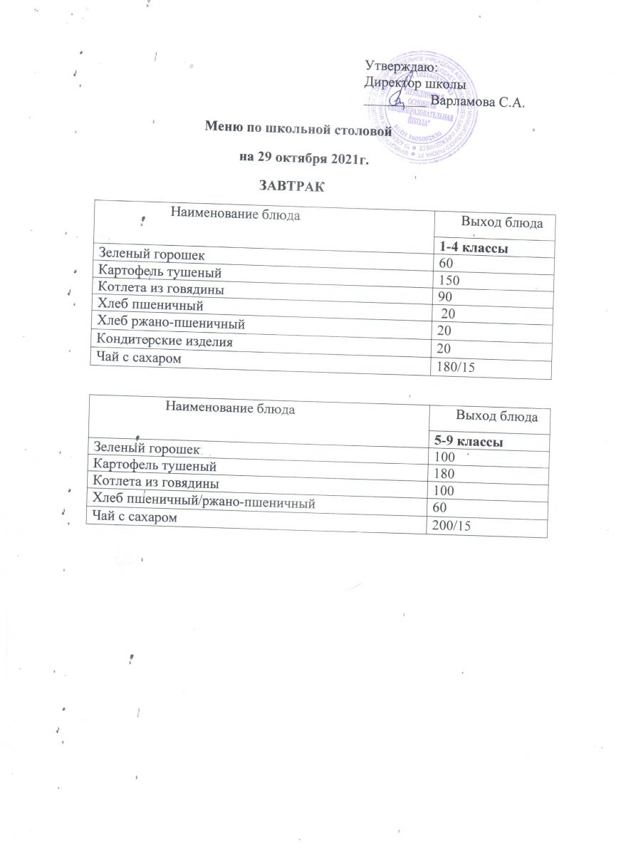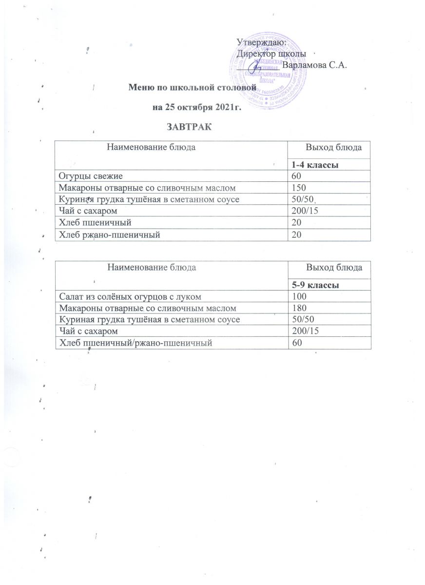 Меню по школьной столовой на пятницу 1 неделя 2021.