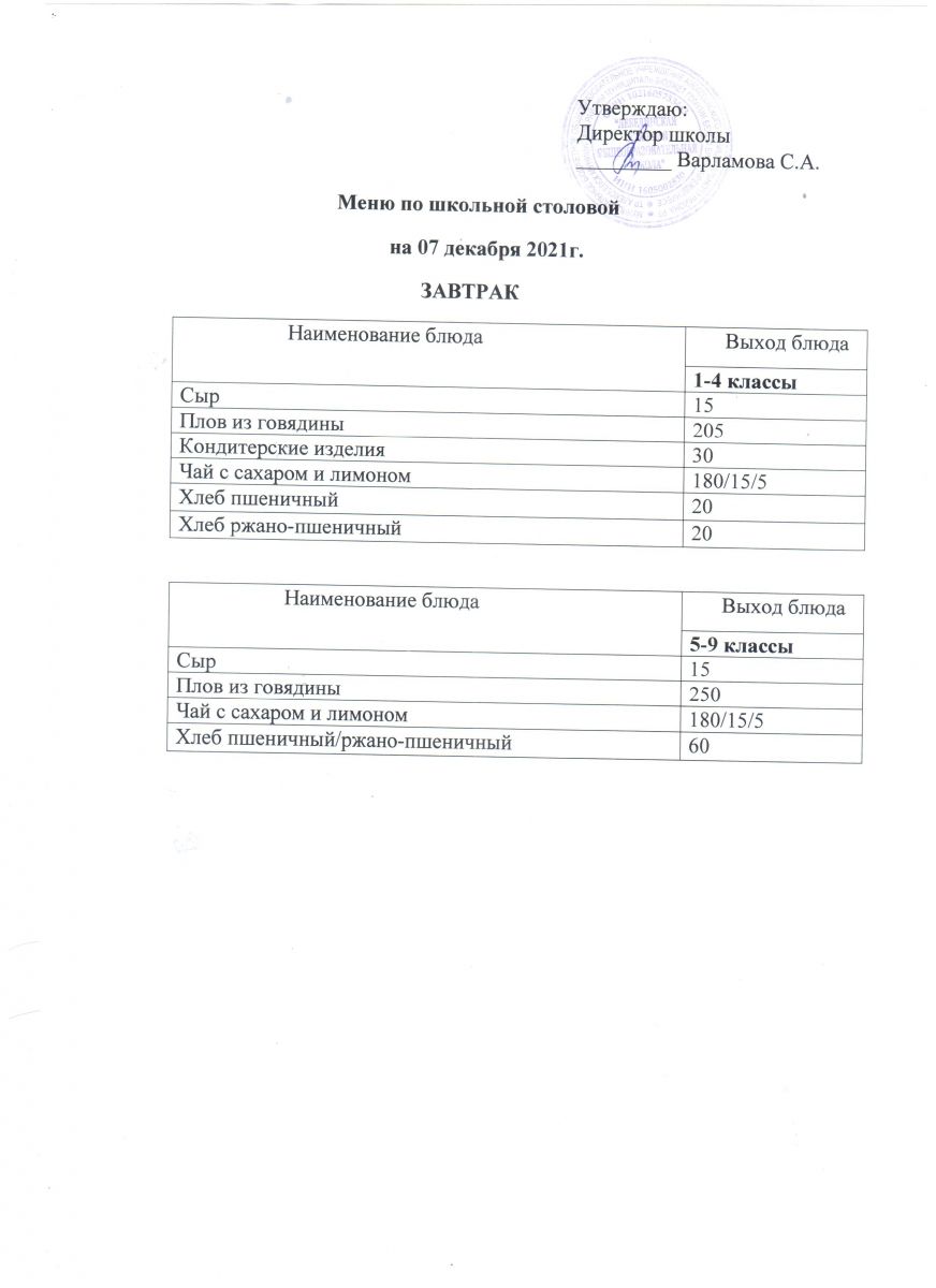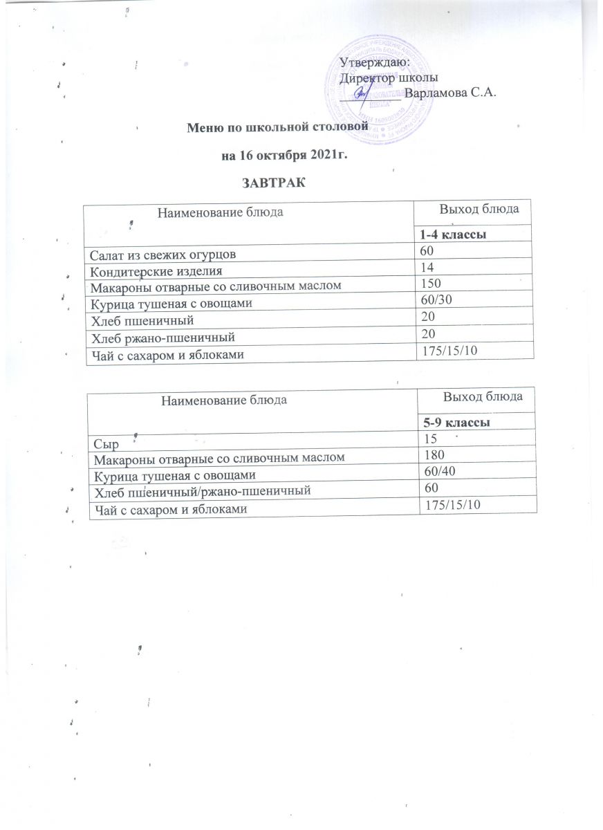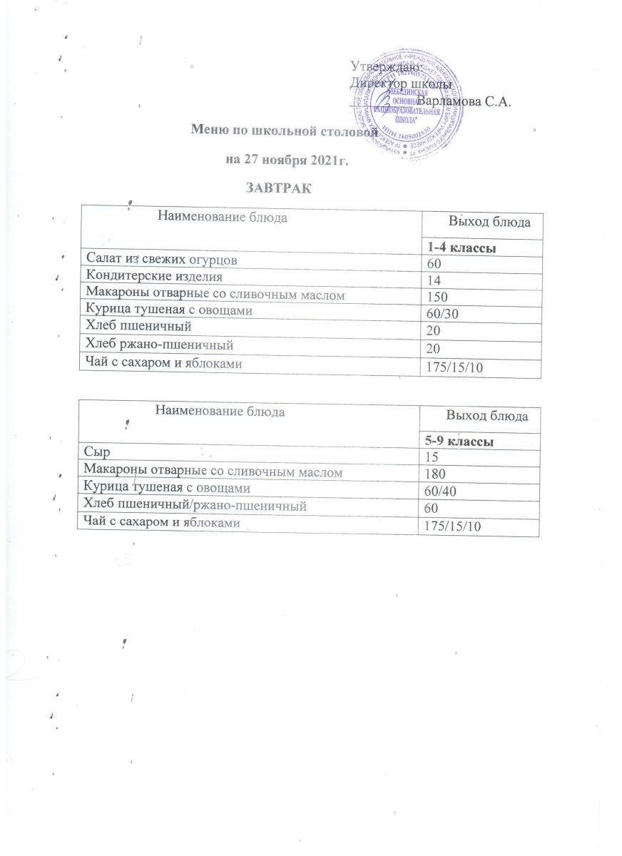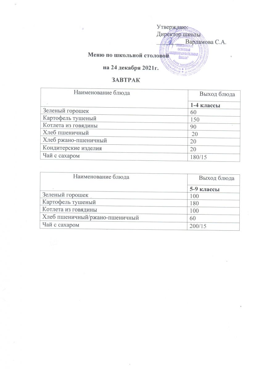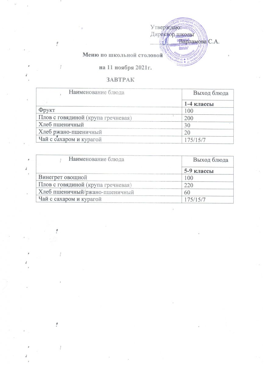 Меню по школьной столовой на пятницу 1 неделя 2021.
